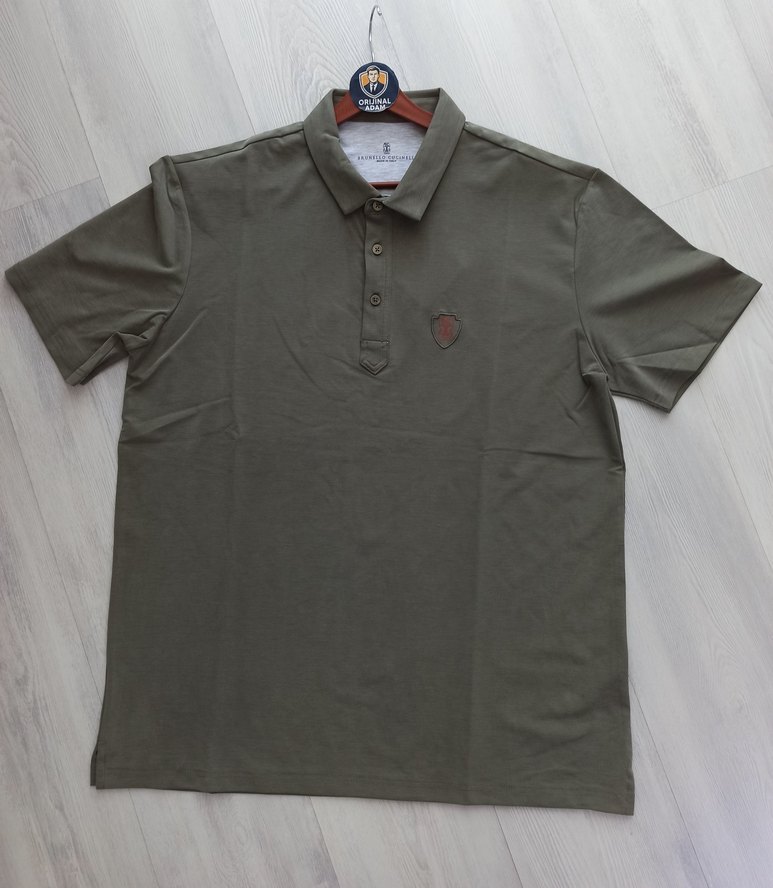 Orijinal Brunello Cucinelli erkek polo yaka t-shirt düğmeli yakalı, kısa kollu erkek polo tişörtü. haki renkte, baskılı desene sahip ve rahat kalıplıdır. Günlük sokak stiline uygundur.
