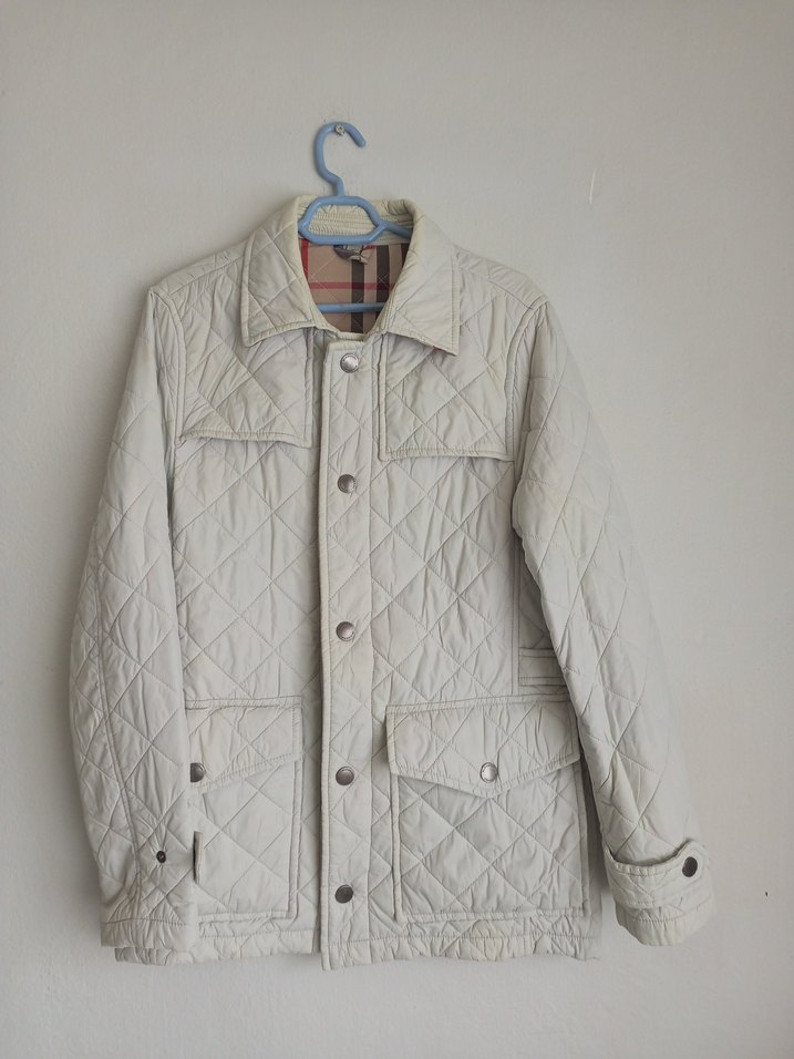 Düğmeli ön, uzun kollu ve kesik yaka detaylı erkek ceketi. Yumuşak keten kumaştan, kapitone desenli, normal ve midi boyda, rahat kesim.