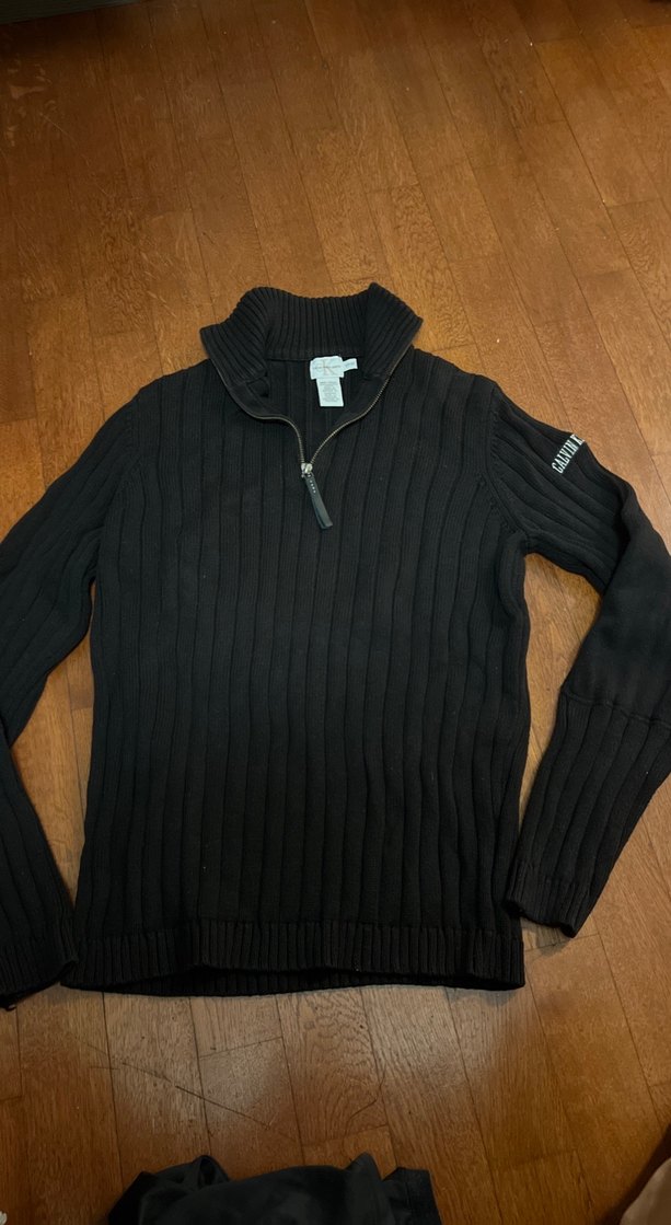 Siyah renkli, yün örme kumaştan yapılmış, yarım fermuarlı yüksek yakalı ve uzun kollu, rahat kesime sahip kazak. Günlük kullanıma uygun, rahat sokak stili.