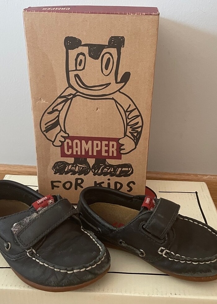 #camper #25 #çocukgiyim # çocukayakkabı Fotoğraflarda görüldüğü gibi kullanıma bağlı deri yüzeyinde ufak tefek aşınmalar mevcuttur. 25 mumara çok yumuşak astarsız deriden padik kıvamında bir üründür. 1. Sınıf deriden üretilmiştir. Dış taban 17 cm’dir.