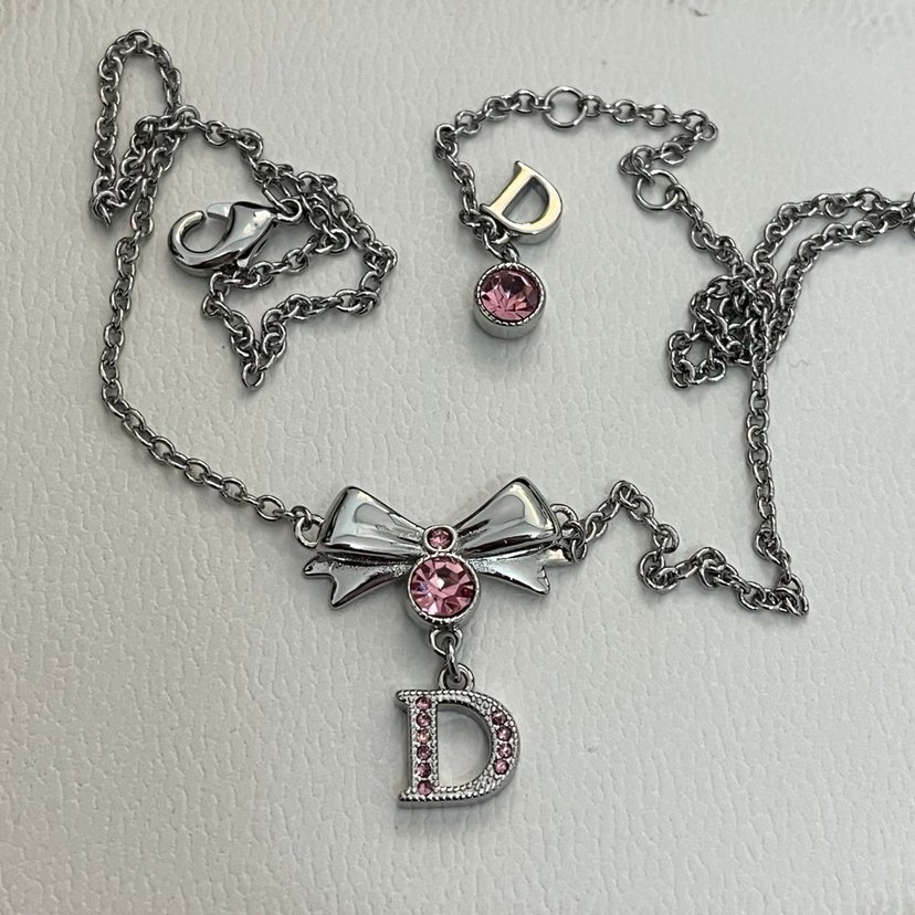 Christian Dior Ribbon detaylı Pembe taşlı kolye. son fiyatıdır