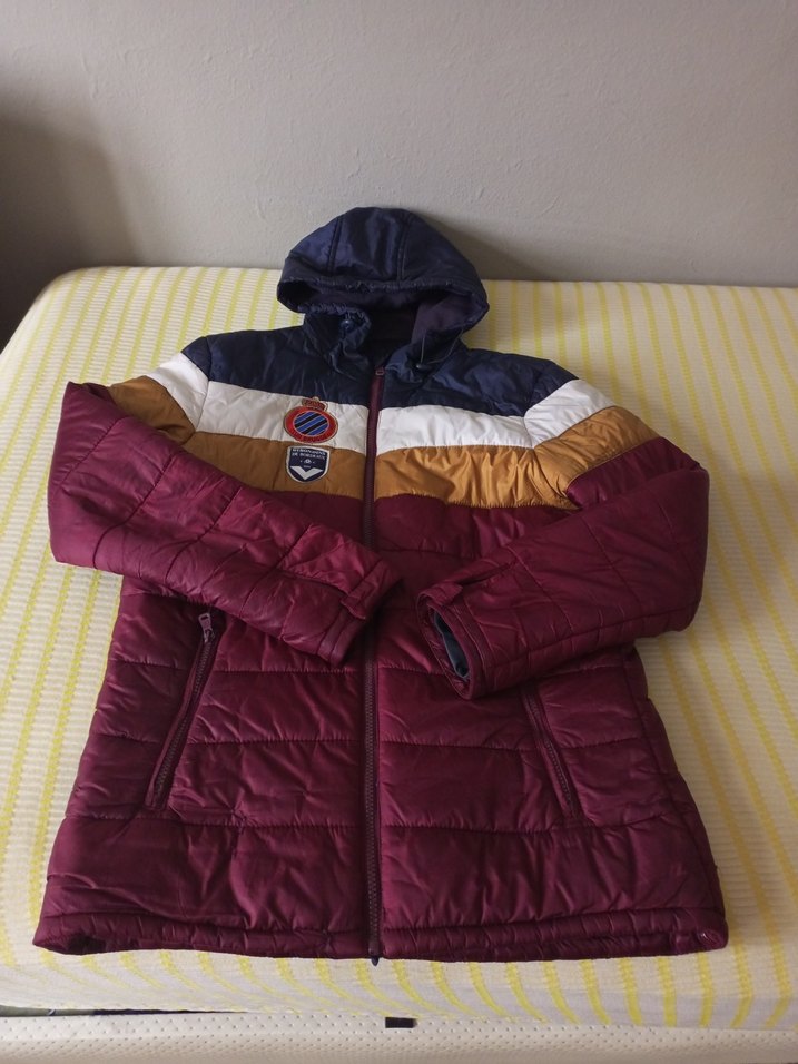 Bordo renkli, kapüşonlu ve nakışlı erkek kış montu. Fermuarlı ve uzun kollu, normal midi boyda, günlük kullanıma uygun şık kesim.