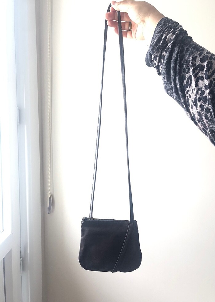 Ürün fotoğrafta göründüğü gibidir. Orijinal deridir. Küçük, zarif bir çantadır. Askısı kısa sayılmaz, yan ve çapraz takılabilir. Çantada biraz deri deformasyonu var, resimde gözüküyor. Rengi koyu kahverengidir.