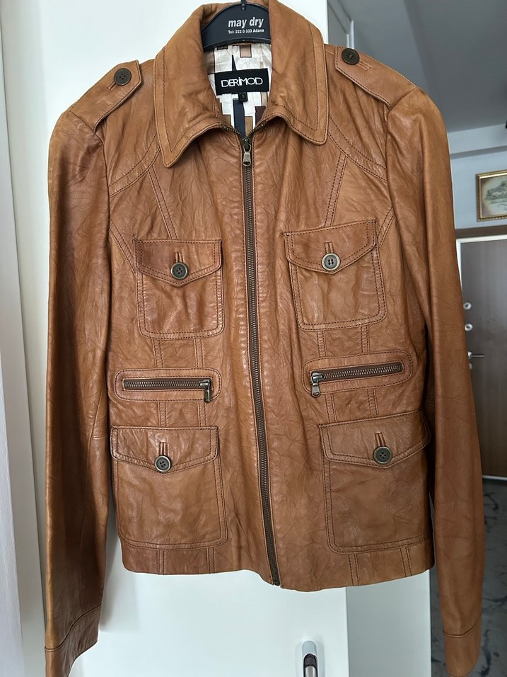Orijinal ve gramajlı bir üründür. Derimod marka, hakiki deridir. 1-2 defa giyilmiştir, sıfır gibidir. Göğüs ölçüsü 44 cm Boy ölçüsü 60 cm