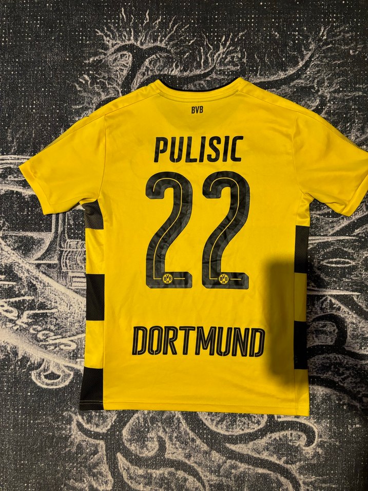 Dortmund 2017/18 iç saha forması. Pulisic baskılı. Orijinal ürün iç etiketi görsellerde mevcut. Minik delikler mevcut görsellerde gösterildi. Kullanıma engel bir durumu yoktur. Ölçüleri En:50 Boy:70 M Beden
