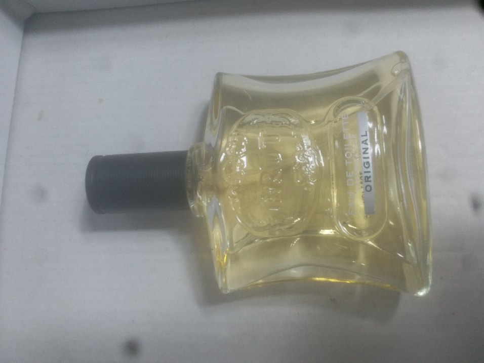 Orijinal erkek parfümü, siyah sprey kapaklı şeffaf cam şişede sunulmaktadır.