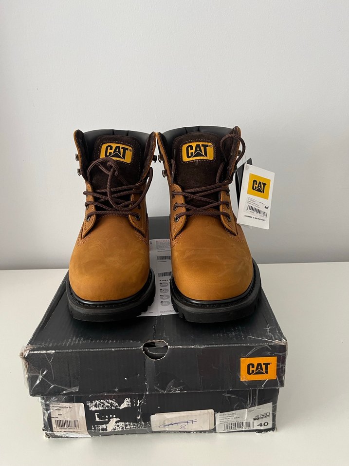 CAT markalı kahverengi deri kadın botlar, dolgu topuk ve tokalı detaylarla outdoor kullanım için uygundur. 100% 100 Orijinal Bakır rengi.Çakma imitasyon ürünlerle kıyaslama yapmayın.