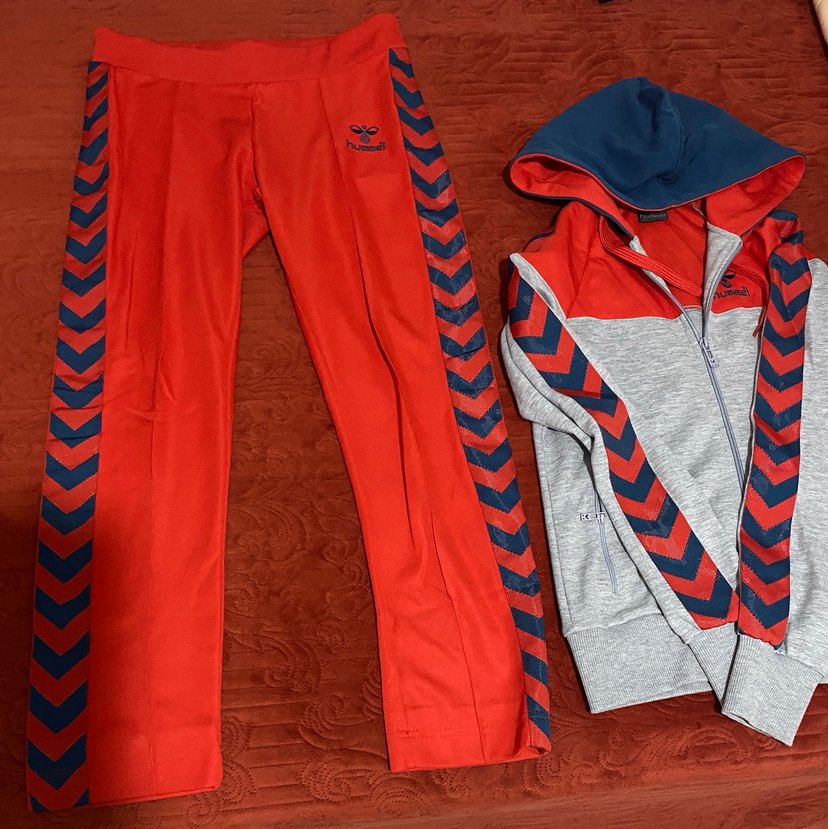 Orijinal Hummel Kırmızı Gri Fermuarlı Eşofman Takımı