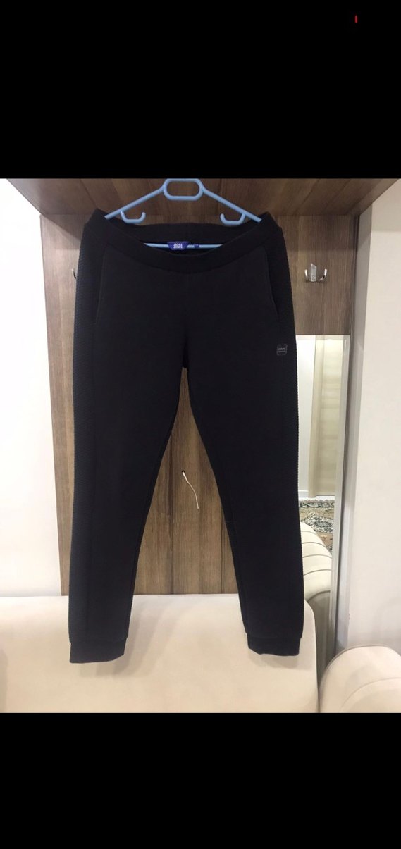 Az kullanılmış, tertemiz ve defosuz. Ölçüler resimlerde görüldüğü gibidir. M beden Slim/Tapered Fit. Yanlarda ve diz altında kabartma dokulu detaylarıyla çok daha premium duran model; kalın polar iç astarlı, beli lastik + ipli, iki yan cep + bir arka cep, paçalar ribanalı. Kışın en konforlu parçası; hoodie ile set, sweat ile spor-şık, mont altına bile rahatça giyilir. Dolabımda beden uyumunuza göre pantolon, kazak, tişört ve gömlekler de mevcut. Toplu alımda indirim yapılır.