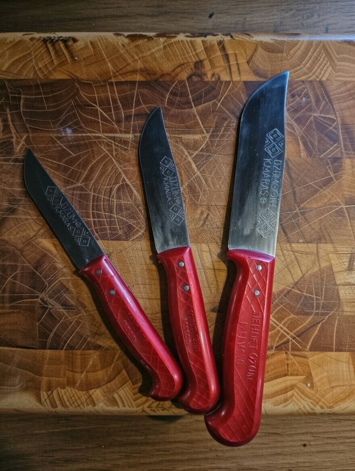 Kahramanmaraş’ın meşhur, tescilli ve yüksek kaliteli Üzümoğlu marka dövme çelik bıçaklarıdır. Hem mutfakta hem de genel kullanımda keskinliği ve dayanıklılığı ile bilinir. Ürünler sıfır ve orijinaldir. Set İçeriği ve Ölçüler: Küçük Boy: 18 cm Orta Boy: 20 cm Büyük Boy: 24 cm ✨ Ürün Detayları: Malzeme: Dövme Çelik (Dövme çelik olması sayesinde uzun süre keskinliğini korur). Marka: Üzümoğlu / K.Maraş Orijinal Üretim. Sap: Ergonomik kırmızı sağlam sap tasarımı. Kullanım: Kurban, mutfak veya hobi amaçlı kullanıma uygundur. Paketleme: Keskin ürünler olduğu için güvenli ve özenli bir şekilde paketlenerek kargoya verilecektir.