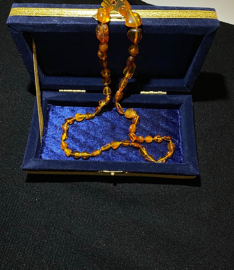 Yetişkinler İçin Orijinal Toprak Fosilli Kaya Damla Kehribar Kolyesi. Özel kadife kutusuyla birlikte gelecektir