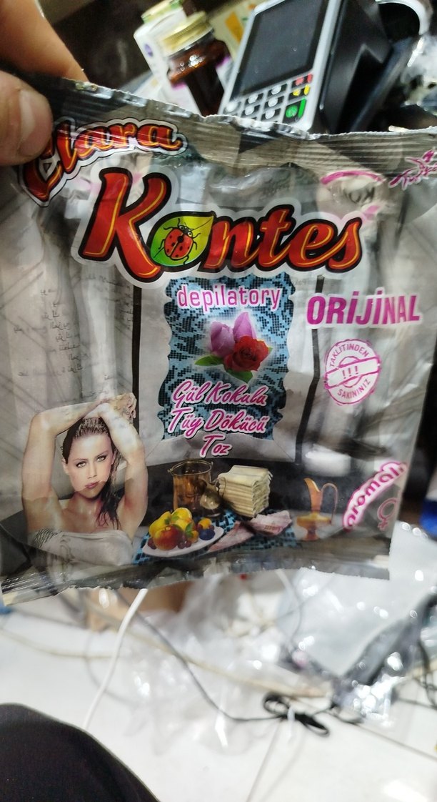 Orijinal Kontes markasına ait, gül kokulu tüy dökücü toz.