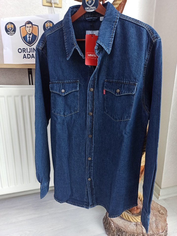 Parlak mavi denim kumaştan, uzun kollu ve çıtçıtlı önlü erkek gömleği. İki cep ve normal boy, rahat kesimle günlük sokak stiline uygun. ADA, ORIJIM markalı.