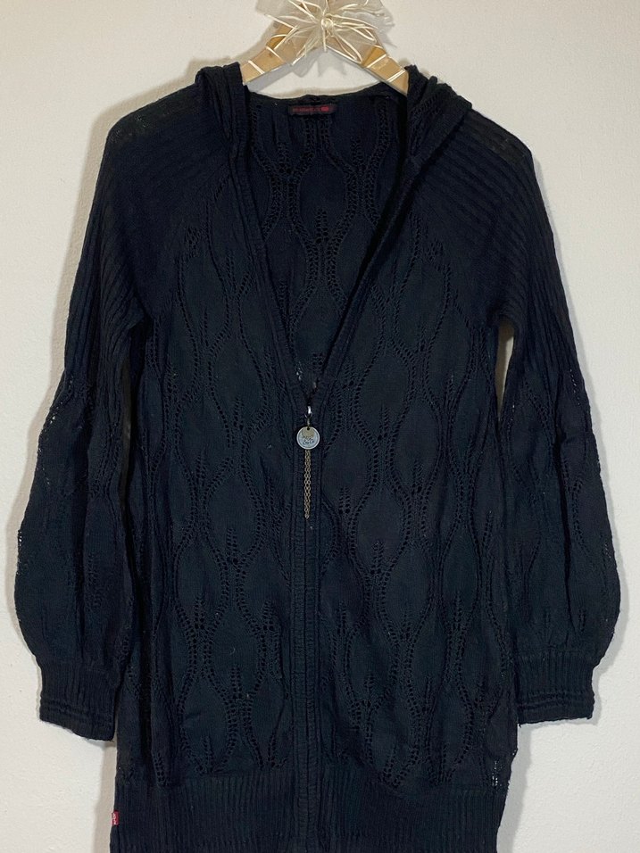 Orijinal Levi’s kapüşonlu yünlü hırka - 1 kere giyildi - Yün alerjmden dolayı çok beğensemde giyemiyorum (Code 460) Kadınlar için siyah, kapüşonlu, uzun kollu örgü hırka. Gevşek kesim ve midi boyda, rahat ve bohem tarzına uygun.