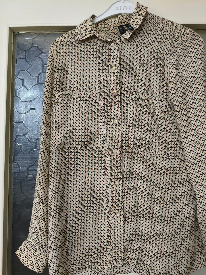 orijinal Mango marka Bej Düğmeli Uzun Kollu Kadın Gömlek