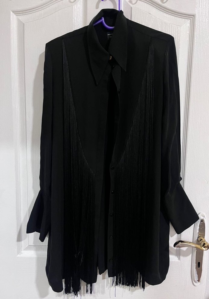 Orijinal Massimo Dutti Uzun Siyah Kadın Gömlek