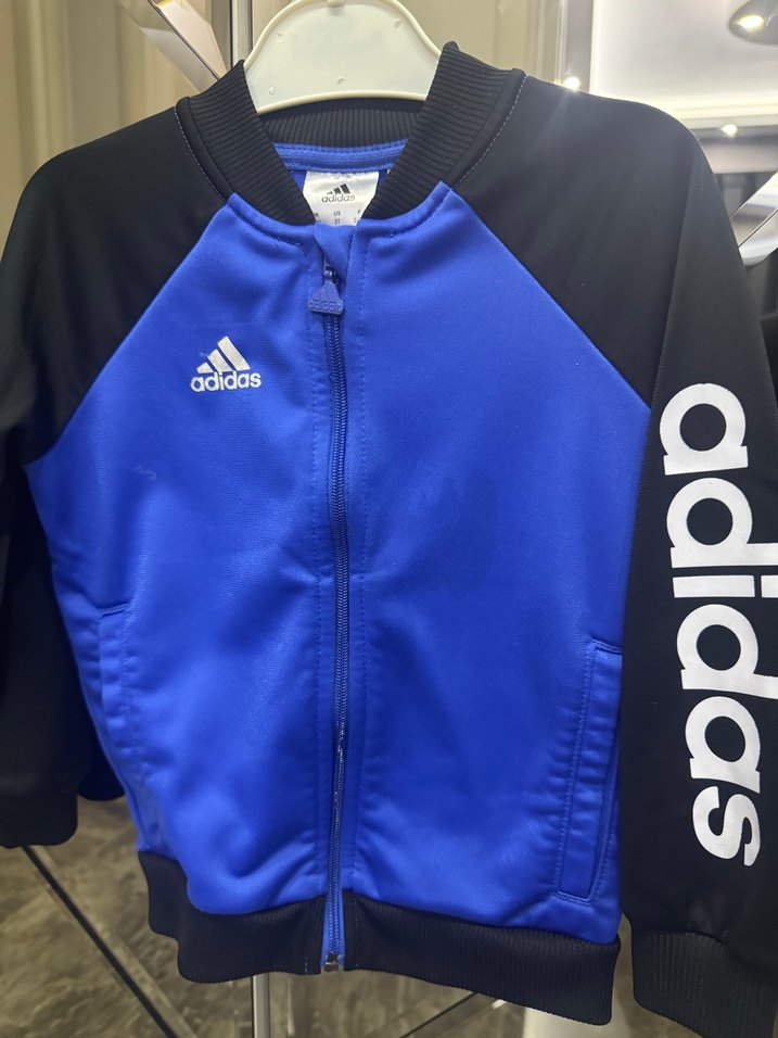 Orijinal Mavi Adidas Erkek Çocuk Fermuarlı Ceket