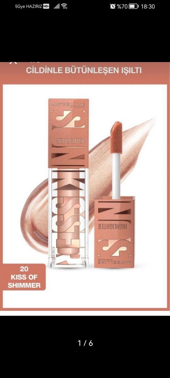 Maybelline New York Shimmer highlighter . Yumuşak dokulu, ışıltılı görünüm sunar. Hiç kullanılmadı
