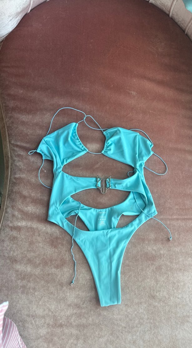 Dünya çapında ünlü lüks marka Naked Wolfe’dan turkuaz renkte, iddialı kesime sahip özel tasarım mayo. Arka kısmında markanın ikonik metal kurt başı logosu yer alır. Sadece 1-2 kez kullanılmıştır, tertemiz durumdadır. Yurt dışından alınmıştır, Türkiye’de satışı yoktur. Cesur ve şık görünümüyle plaj ve havuzda fark yaratır. Renk: Turkuaz Marka: Naked Wolfe Beden: S Durum: 1-2 kez kullanılmış, tertemiz İstanbul’da satışı: Yok (yurt dışından alınmıştır)
