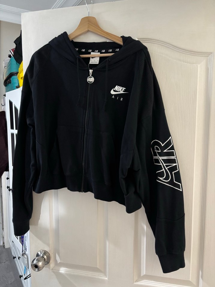 Nike marka siyah renkli, fermuarlı, oversize kesim orijinal kapüşonlu hırka