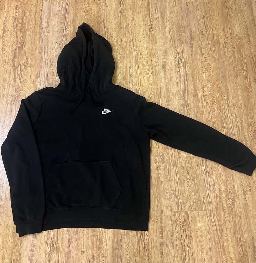 Nike marka siyah kapüşonlu sweatshirt, uzun kollu ve rahat kesim. Yumuşak ve sıcak kumaştan üretilmiştir, sportif ve günlük kullanıma uygundur. Çok hafif renk atması vardır.