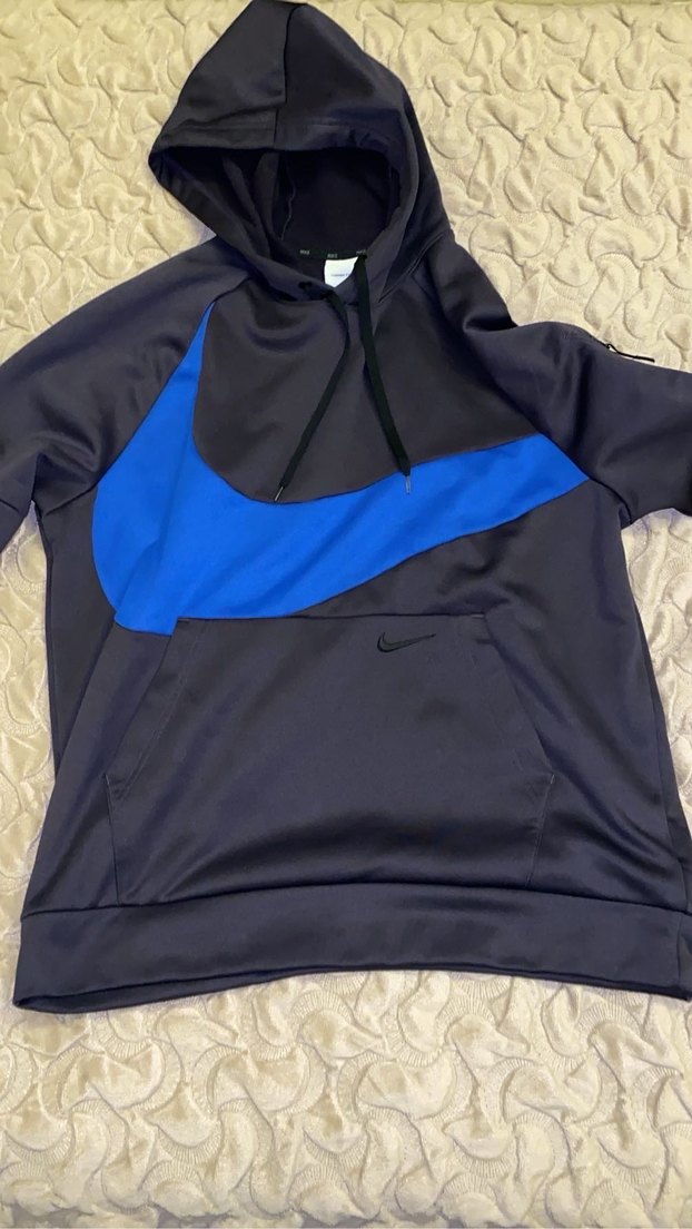 Defosuz,nerdeyse hiç giyilmesi .Erkek sweatshirt, kapüşonlu ve uzun kollu ve koyu kumaş üzerinde büyük mavi desen bulunur. Kolunda fermuarlı cep vardır.