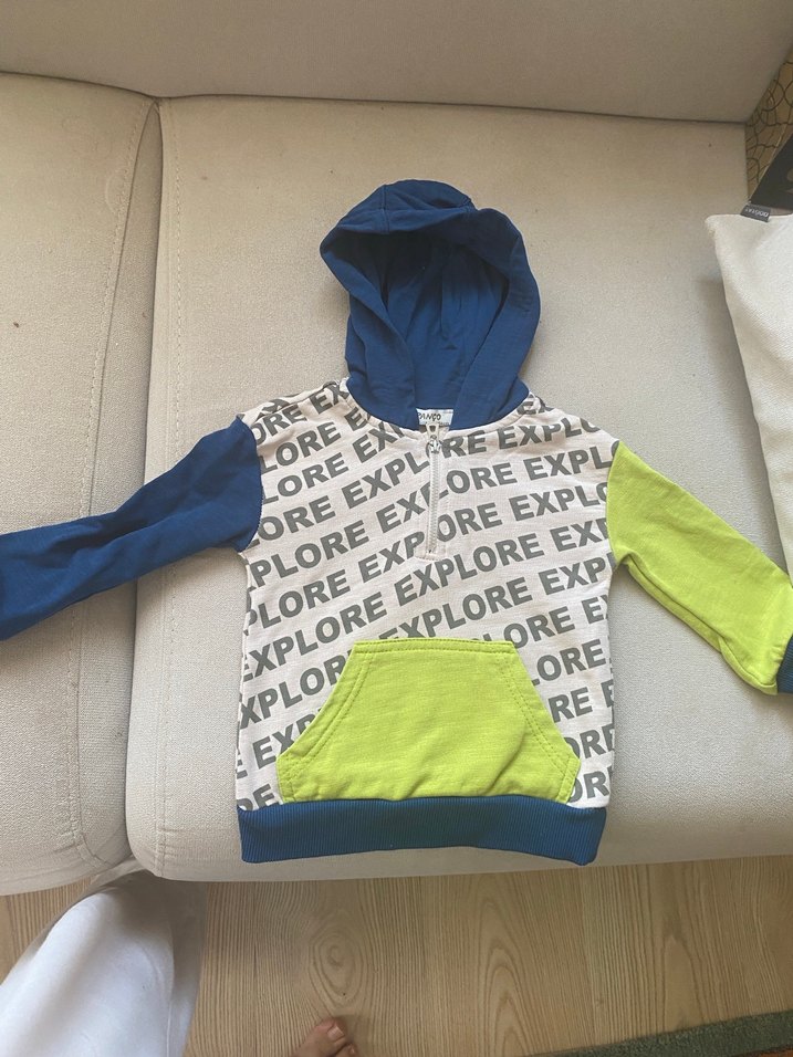Kapüşonlu, uzun kollu, bol kesim erkek sweatshirt. Yumuşak ve sıcak kumaştan, renkli baskılı desenli, fermuarlı detaylıdır. Trendy ve rahat tarz için uygundur.