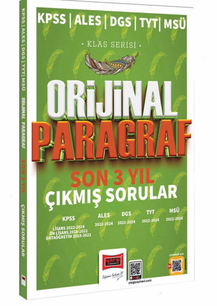 KPSS, ALES, DGS, TYT ve MSÜ için 2022-2024 yıllarını kapsayan son 3 yılın orijinal paragraf çıkmış sorularını içerir.