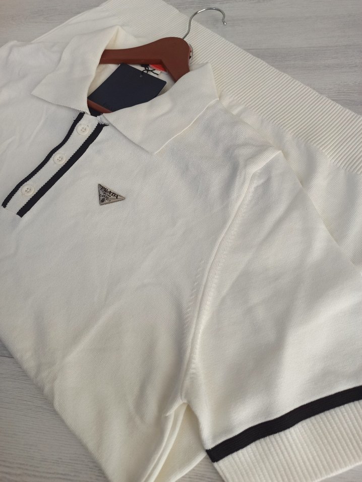 Orijinal Prada beyaz erkek triko polo yaka t-shirt premium giyinmek isteyenlere