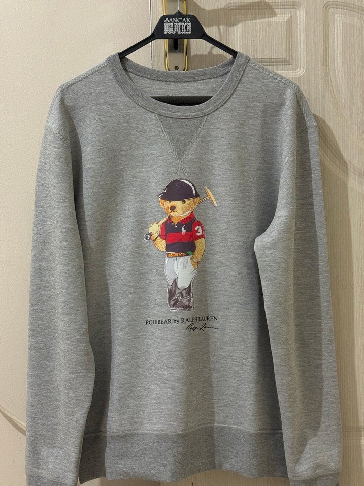 Orijinal Polo Ralph Lauren bisiklet yaka sweatshirt. Markanın en ikonik tasarımlarından biri olan Polo Bear teması ile zamansız ve koleksiyon değerine sahip bir parçadır. Sadece 1 kez, kısa süreli kullanılmıştır. Hiç yıkanmamış, kuru temizleme görmemiştir — sıfırdan farksız kondisyondadır. Gri rengi, net baskısı ve kaliteli dikişleriyle görselde görüldüğü gibidir. Kumaşı tok, formu güçlüdür; yıka–giy kullanımında bozulma yapmaz, uzun yıllar rahatlıkla giyilebilir. Gerçek Polo Ralph Lauren kalitesini bilenlerin değerini hemen anlayacağı ömürlük bir parça. Beden: L Değerini bilen bir alıcıya gitmesini isterim. Alan kişiye iyi günlerde, keyifle kullanması dileğiyle. ✨