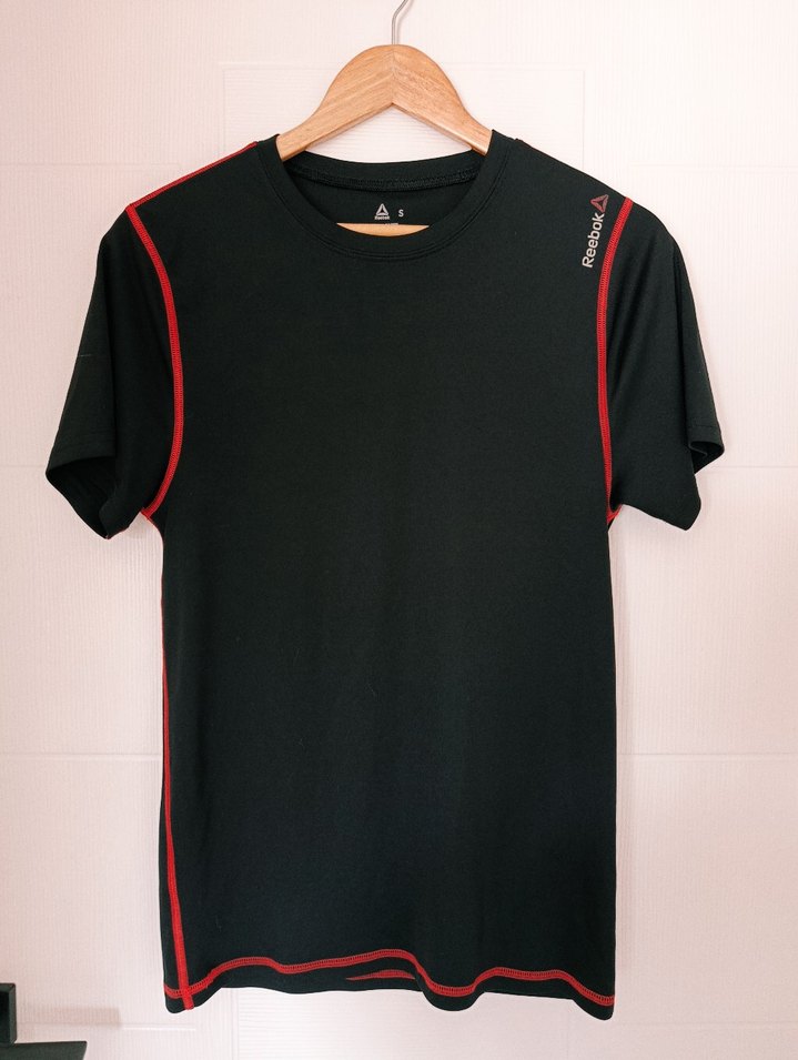 Reebok markalı, siyah renkli, kısa kollu ve yuvarlak yakalı erkek tişörtü, kırmızı baskılı detaylarla sportif şıklık sunar. ♂️boy:70cm en:45cm.Sıfır gibi, tertemiz.