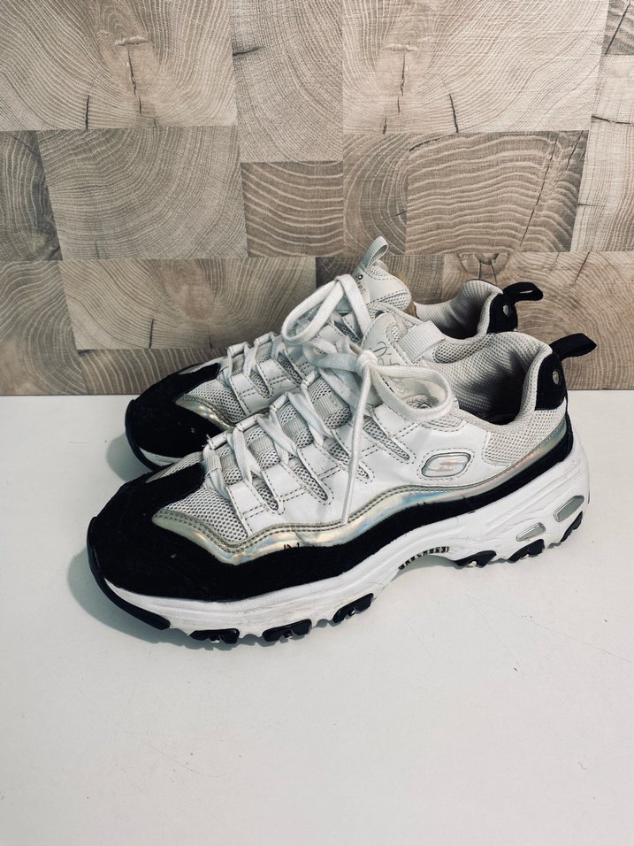 Orijinal Skechers D’lites ayakkabı - Detaylı bakmadıkça farkedilmeyen Sağ tekinin önünde üst katman olan süetinde bir sıyrık mevcut fotoğrafı yakınlaştırıp görebilirsiniz - (Code 456)