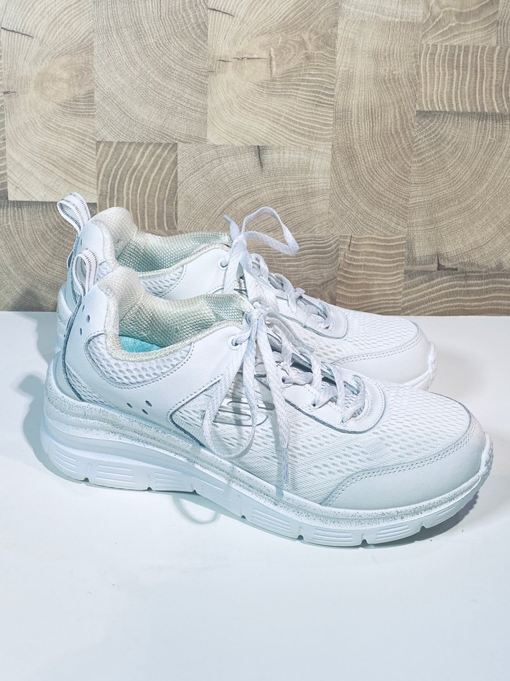 Orijinal Skechers beyaz ayakkabı - Topuk kısmı simli - oldukça rahat - 1 kere giyildi Sıfırdan farksız- Kalıbı daha küçük olduğundan 36 / 36,5 numaralara daha uygun (Code 316)