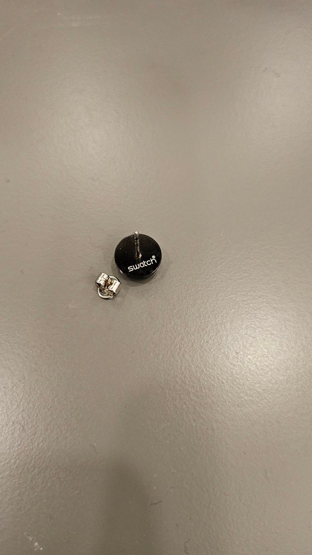 Orijinal SWATCH marka, Minimalist ve rock punk tarzına uygun, siyah renkte sade erkek küpesi, gümüş saplı. Kadınlar için de uygundur. Sıfır, hiç kullanılmamıştır. Hediye geldi.