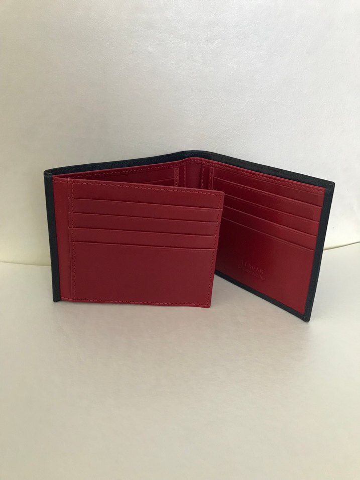 Orijinal Tergan marka modern tasarımlı erkek cüzdanı. Dışı lacivert renk içi kırmızı renk. Çoklu kart yuvası ile iş ortamına uygun şık tasarım.