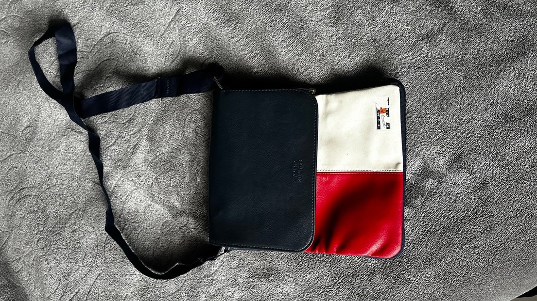 çapraz askılı çanta. İkonik kırmızı-beyaz-lacivert tasarım. Fermuarları sağlam, askısı ayarlanabilir. Kullanıma bağlı hafif izler mevcut (fotoğraflarda görüldüğü gibi). Günlük kullanım için şık ve kullanışlı.