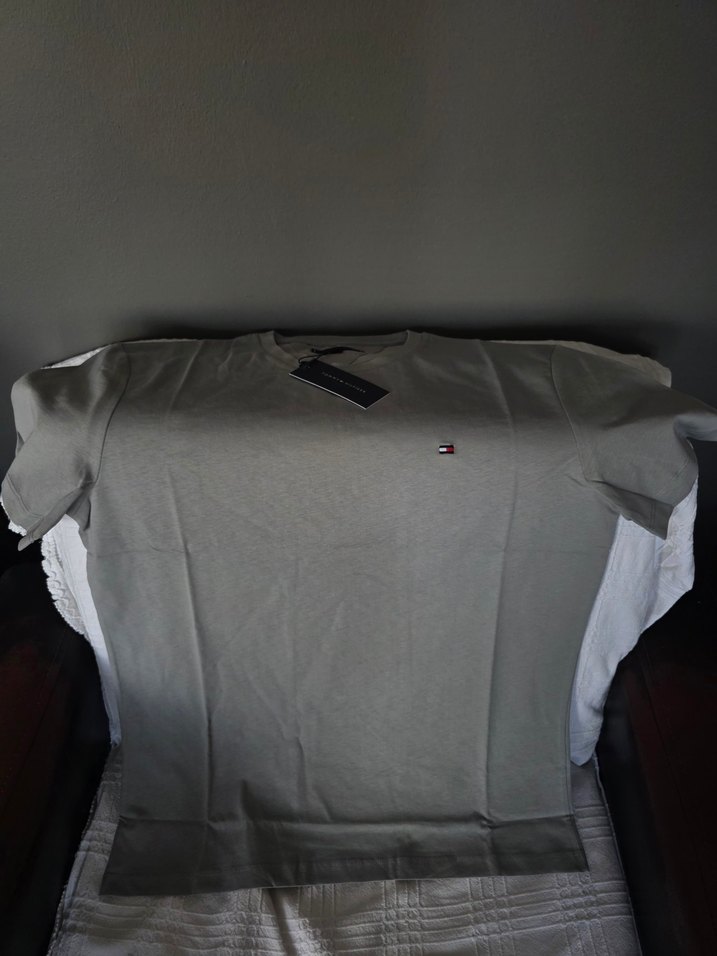 Orijinal Tommy Hilfiger Gri Kısa Kollu Erkek Tişört