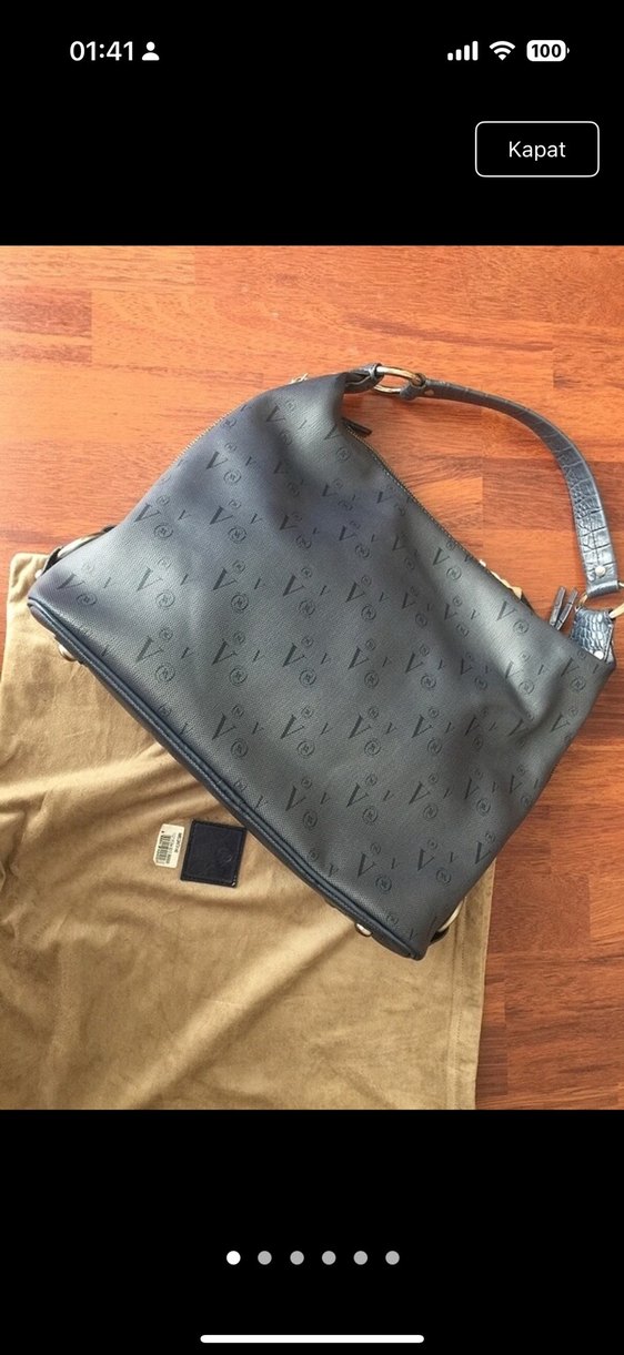 Gri mavi kadın çantası, baskılı desene ve fermuarlı kapamaya sahiptir. Klasik zarafetle çağdaş Paris tarzını birleştirir, günlük kullanıma uygundur.