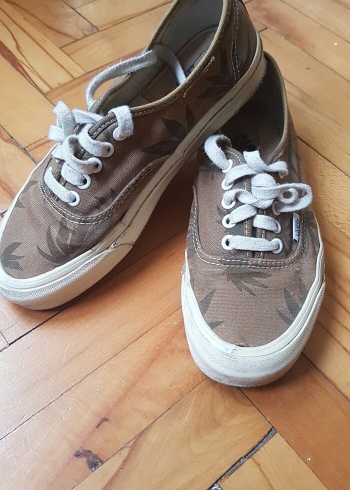 Orijinal Vans ürünüdür. Rengi haki yeşili olup üzerinde desenleri vardir. Parmak ucuna yakin küçük bir defosu bulunduğundan uygun fiyata veriyorum.