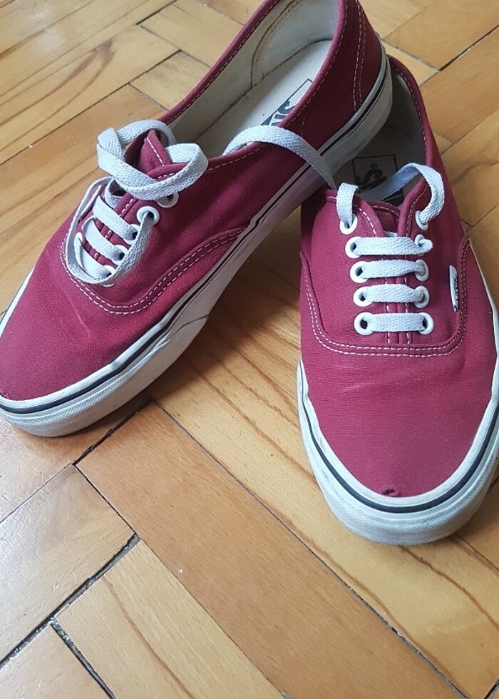 Orijinal Vans ürünüdür. Düz bordo renkte, içi ve tabanı temizdir. Yalnizca iki tekinde de parmak uçlarında küçük kusurlar bulunmaktadir. Bu sebeple uygun fiyata verilecektir.