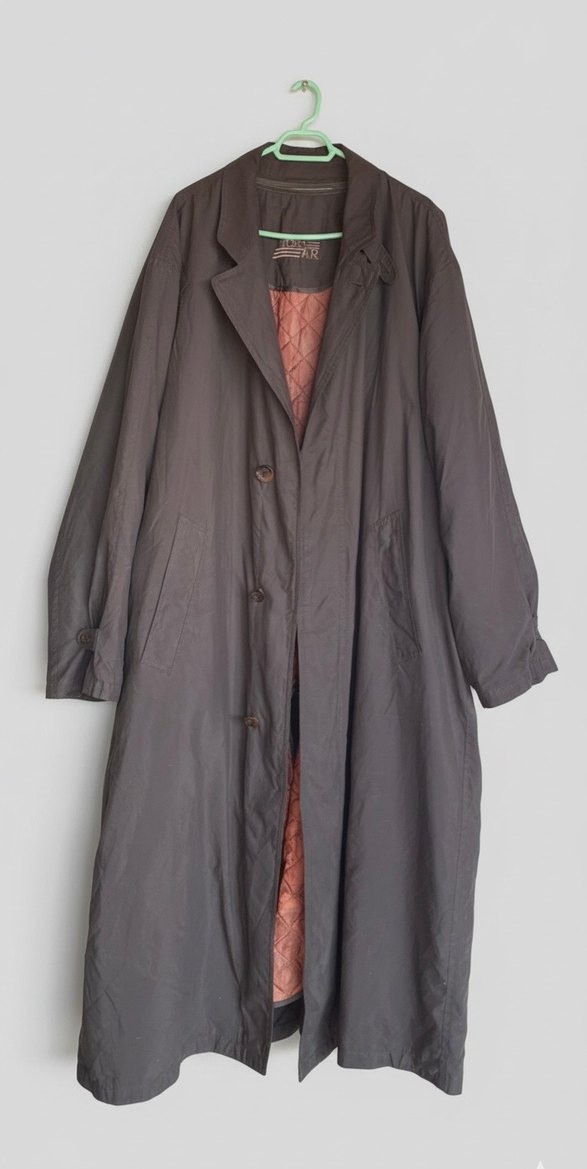 Claude Philipp Clothing Company markasına ait, nadir bulunan ve yüksek kaliteli, otantik bir vintage parçadır.Etiketinde belirtildiği gibi, Almanya'nın yeniden birleşmesinden önceki döneme ait. 1980'lerin sonu ve 90'ların başı modasına uygun, oversize (bol/geniş kesim) ve uzun. İç kısmı, %59 Asetat ve %41 Viskoz karışımından yapılmış, parlak kiremit/turuncu renkte kapitone astar ile kaplanmıştır.kapitıne fermuarlı çıkarılınca yazlık trençkot olarak kullanılabilir. Dış kısım mat, koyu bir renktedir (Füme/antrasit arası). Dış Kumaş Hafif, yumuşak dokulu. Trençkot yaşına göre iyi kondisyondadır,sadece düğmelerinin bazıları kırık.yedek bir büyük bir de küçük düğmesi vardır. Bu tarz trençkotlar genellikle iş kıyafetlerinin üzerine giyilmek üzere tasarlanmış, ancak aynı zamanda rahat ve şık bir görünüm sunan, çok yönlü bir giysidir.Etiketinde 48 beden yazıyor yine de ölçüleri dikkate alınız. İki koltuk arası yaklaşık mesafe 57 cm. Uzunluk 1.24 cm. kol boyu uzunluk(düşük kol): 61.cm. (Acb12)