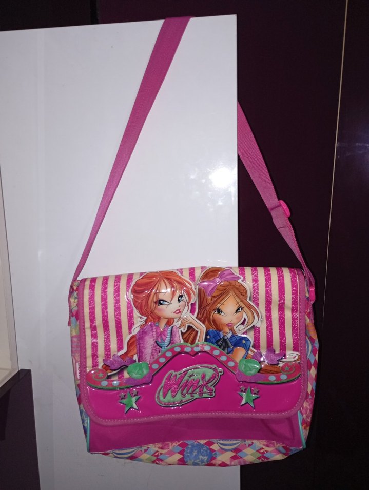 orijinal lisanslı yaygan marka winx postacı çantası. az kullanıldı Bir hafta falan okulda kullanıldı daha sonra okulda ilkokula uygun bulunmadığı için bu tarz bir çanta kullanılmadı. herhangi bir yırtığı yok sadece çok az belli noktalarda görünmeyen kurşun kalem lekeleri var. teklif yapabilirsiniz değerlendiriyorum