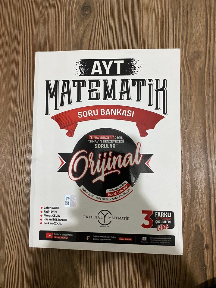 AYT Matematik Soru Bankası, sınav sorularından farklı orijinal sorular içerir ve 3 farklı çözüm yöntemi sunar. Sadece 5-6 sayfası çözülmüştür tertemizdir hiçbir yıpranması yoktur. Pazarlık yapılır