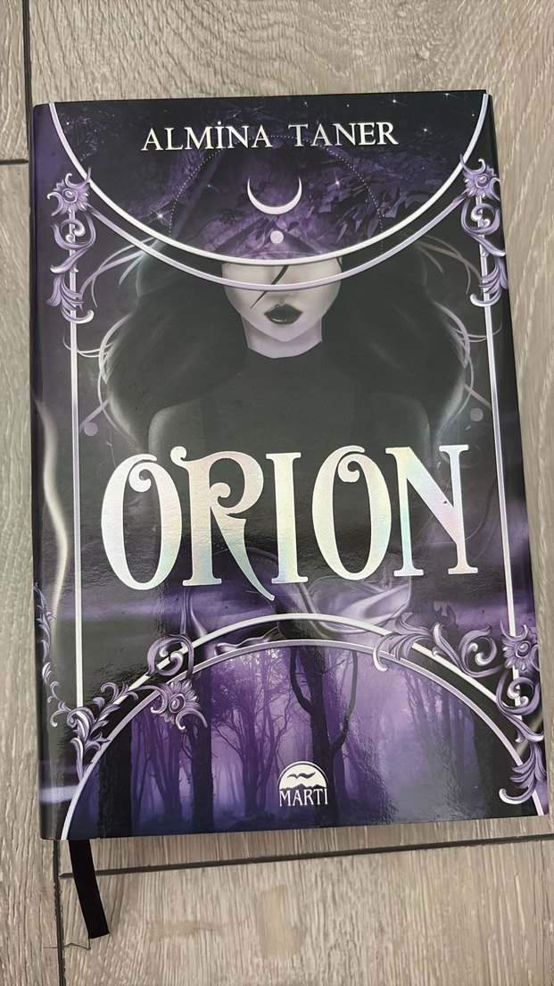 Almina Taner'in Orion adlı romanı, hilal ay altındaki kadını ve mistik orman sahnesini gösteren gizemli kapak tasarımına sahip.