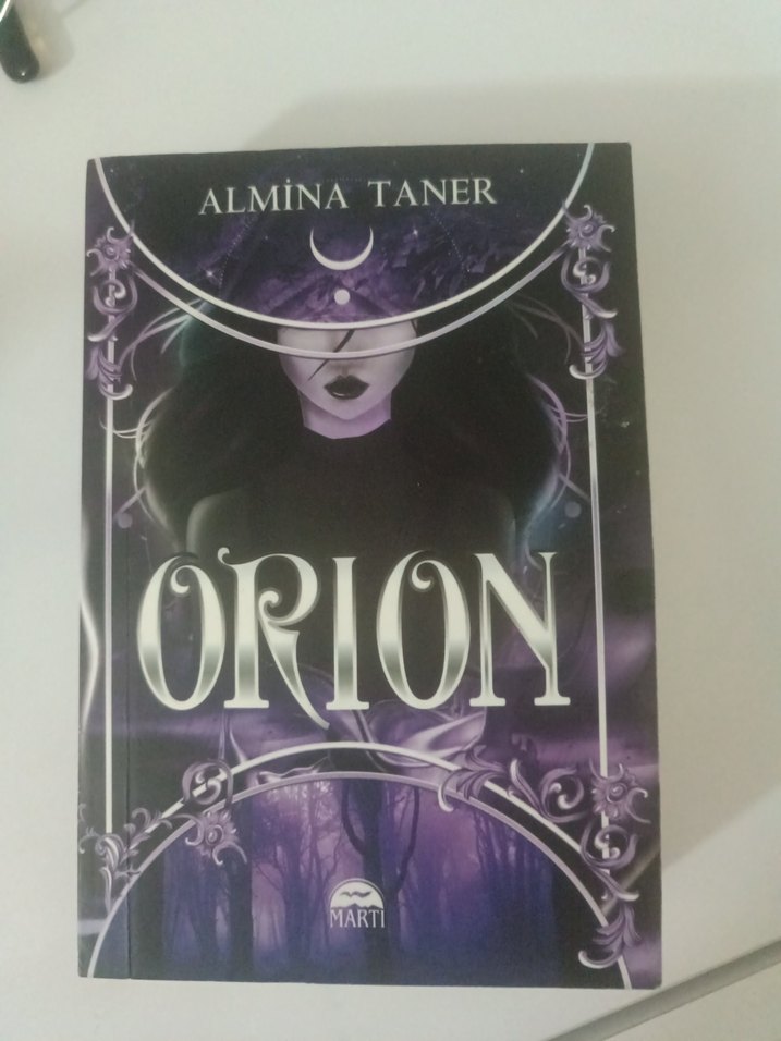 Almina Taner'in Orion adlı romanı, mistik ve karanlık tonlarda sembolik unsurlar içeren bir kapakla sunuluyor.