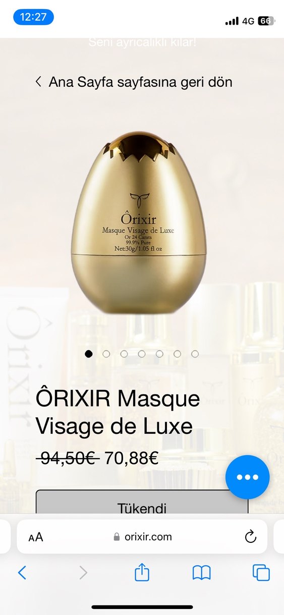 Orixir kremi, cildi yumuşak ve beslenmiş tutan lüks bir formüle sahiptir. 24 karat altın içeren 30g ambalajda, şık tasarımla sunulur. İsviçre’den aldım 90 euroya tarihi geçmiş Malesef uyguna koyuyorum içindeki ürün bozulmuş olabilir iade kabul etmiyorum bu üründe