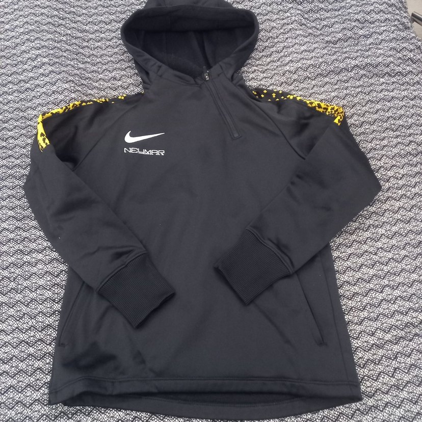 Siyah, fermuarlı yakalı, baskılı detaylı uzun kollu kapüşonlu sweatshirt. Yumuşak ve sıcak kumaştan, spor ve günlük kullanım için uygundur. Nike ve 'NELXFR' baskılı.