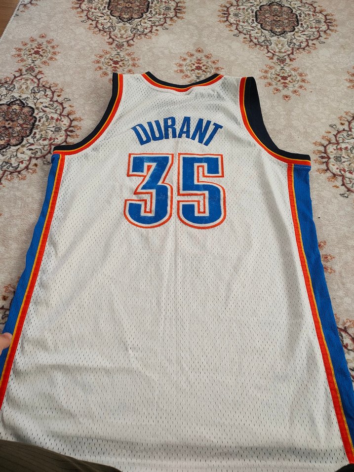 Erkekler için beyaz, kolsuz, sıkı kesim forma. Sentetik örgü kumaştan, baskılı detaylı, spor ve sokak giyimine uygun. Sırtında 'Durant' ve 35 numara bulunur.