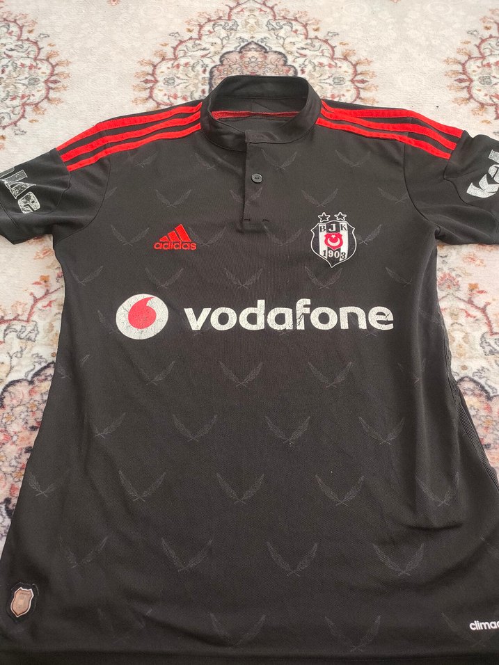 Erkekler için siyah, V yakalı, kısa kollu, sentetik kumaştan, Velcro detaylı bol kesim spor tarzı jersey. Vodafone baskılı. ⚽