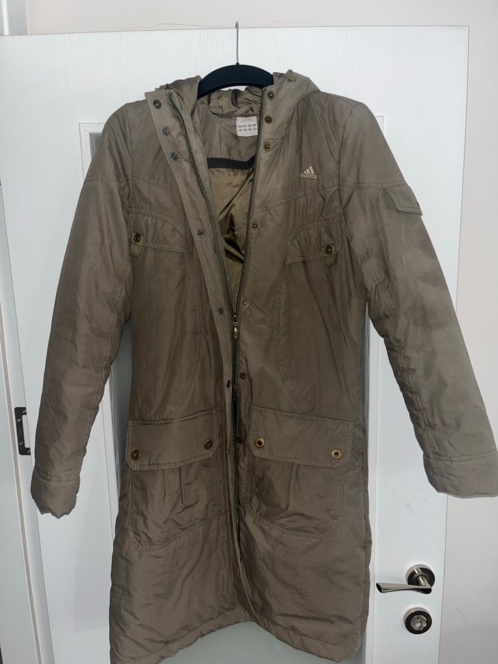 Bej renkli, keten kumaştan yapılmış, kemerli ve uzun kollu midi kadın ceket. Notch yakalı ve sokak stiline uygun, günlük dış mekan kullanımı için ideal.